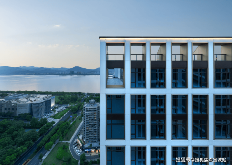 项目为滨江核心区稀缺现房,外立面采用“金镶玉”设计(白色铝板+香槟金窗框)1