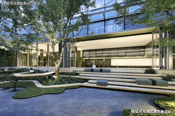 POK以钱塘江潮为灵感,结合奥体的国际化气质,于杭州主场种下一座极简园林景观的“江潮绿洲”,并且巧妙利用建筑的围合与地形进行堆坡造景,定制富有度假感的立体度假式花园,更大化草坪、下沉庭院、主题化架空层及多样化景观功能空间,创造出自然且有温度的花园体验。