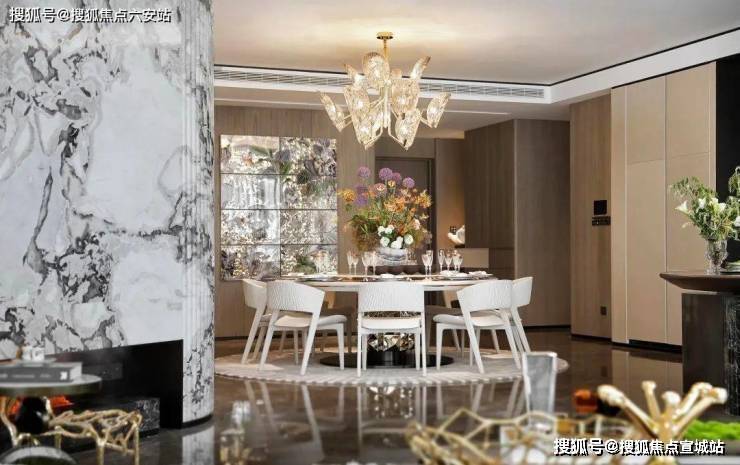 最后是精奢于心的优雅空间,例如由琚宾设计的杭州首个宋韵作品「SONG370」,提取经典名画《西湖全景图》中的丹青意蕴,运用风景开阖、空间对比等传统设计手法,从青玉横幅背景墙到金缕编织墙面,从自然奢石到苔藓微山水,千百次挑选材质和精工打磨,为杭州带来一处奥体之上的江南庭院。