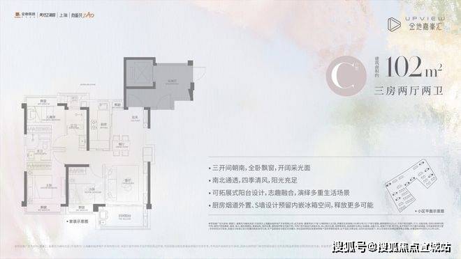 以及我们的网红爆款,建面约102㎡(C户型)三房两厅两卫,不仅保留了其小户型所有的优势,更增强了空间感和舒适度!