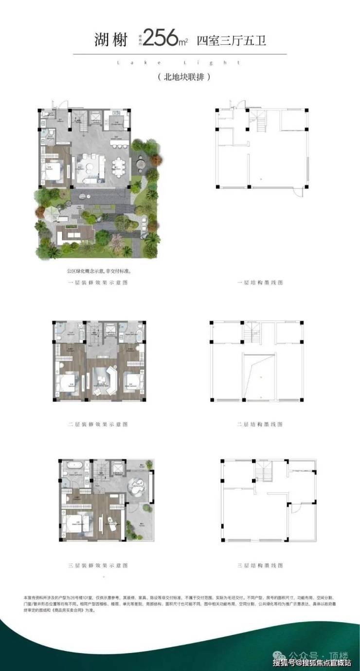(1)联排:打造约246m²、约256m²(边户)、约280m²三个户型面积,以迭代的联排作品,致敬真别墅的回归