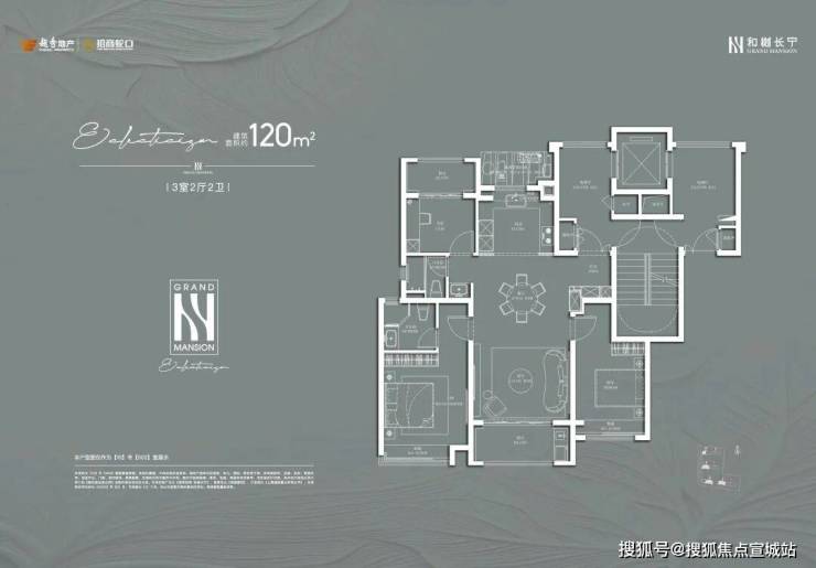 建面约120㎡3房2厅2卫: