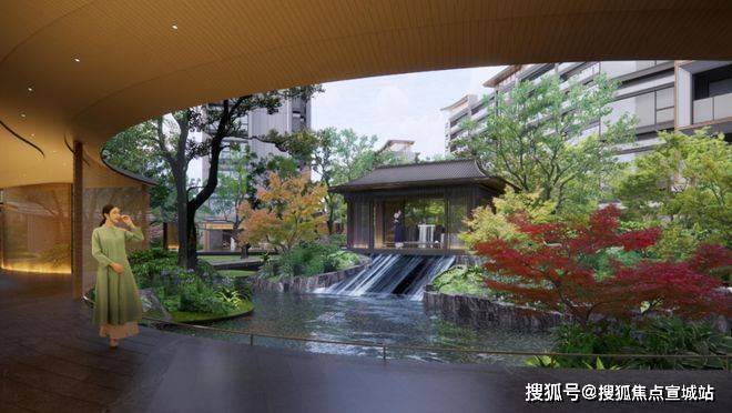 景观设计:园林景观运用苏州园林经典元素,打造一轴九园布局,结合三进院落归家礼序,还融合了西塘良壤酒店的度假园林理念,通过架空层串联起 9 大主题花园,营造出归家即度假的氛围。