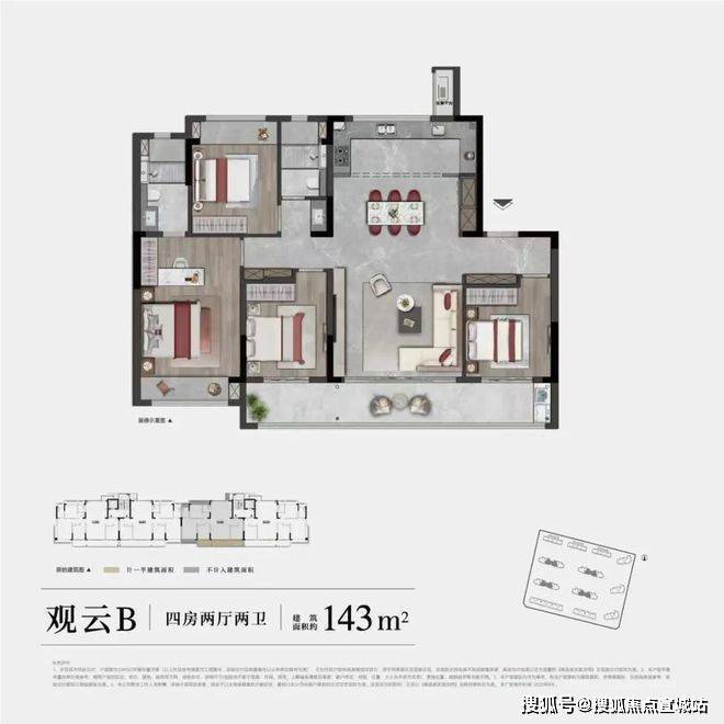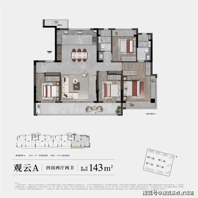 主力户型:有 128㎡四室两厅两卫、143㎡四室两厅两卫、180㎡四室两厅三卫等户型。