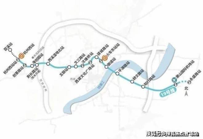 机场快线19号线:直距约870米火车西站站,始于苕溪站,通向萧山机场方向永盛站,从杭州西站到东站仅需30分钟,到萧山机场仅需45分钟。