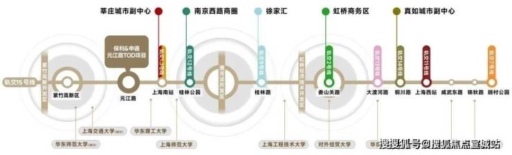 交通配套:项目为 15 号线上盖,5 站可达徐汇,9 站前滩,3 个红绿灯上中环。周边还有 5 号线和 23 号线(在建中),可快速联通莘庄、徐家汇、人民广场等 CBD,享受 “三轨交” 的多维交通体系。