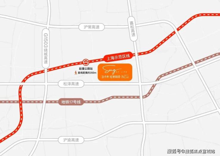 保利虹桥和颂·IN255 不仅有轨交规划正在落地,且直线距离示范区线赵重公路站(在建) 仅约350米 , 是不可多得的 真轨交盘,2站前湾、3站虹桥枢纽、5站华为基地。