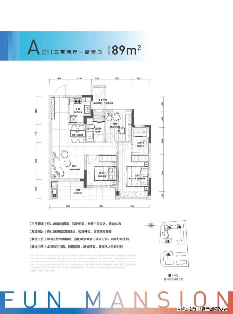 面积约89-128㎡,层高2.9米,阳台不封闭,底层架空层高度3.4米