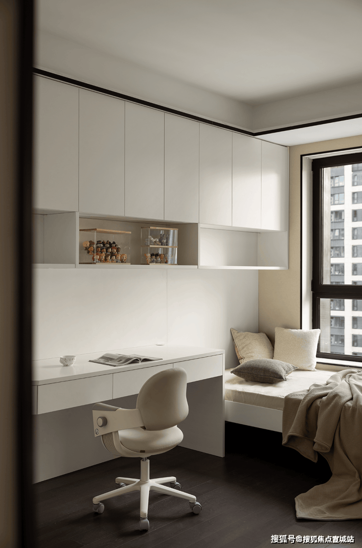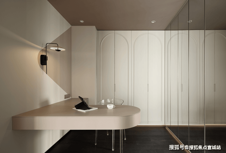 柜体隐形门,利用视觉上材质统一性,让空间不再片面化,通透明亮空间将精致的现代生活完美诠释。