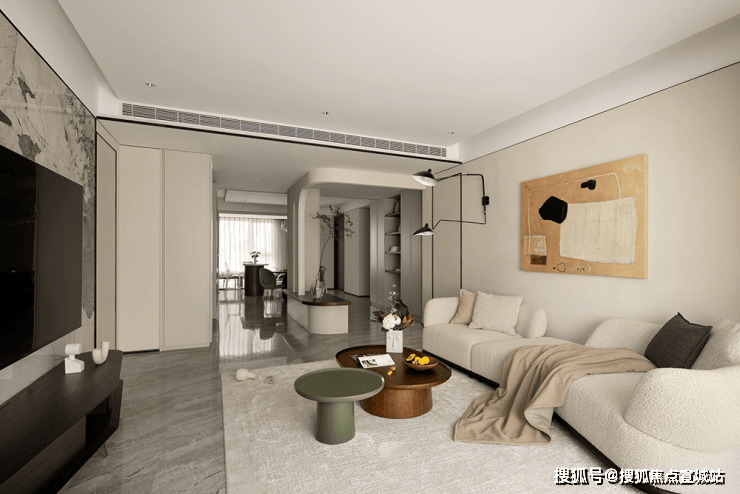 客厅使用了较多的灵活家具,方便后期屋主更换不同的生活场景模式。