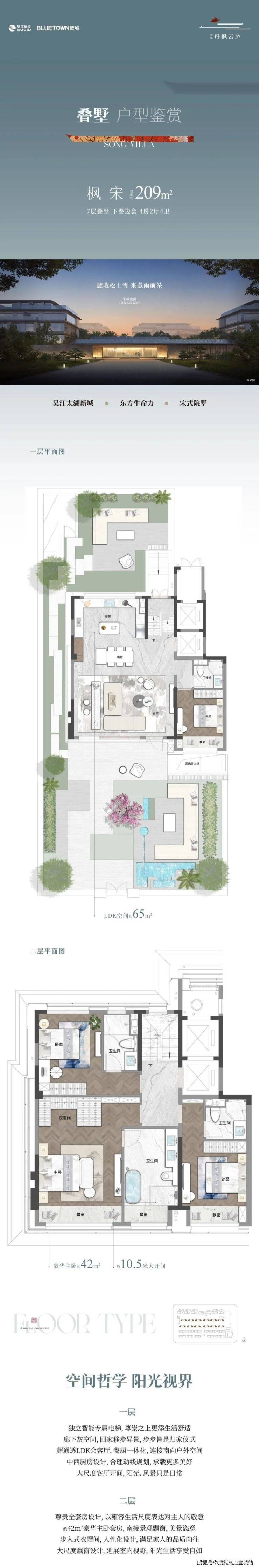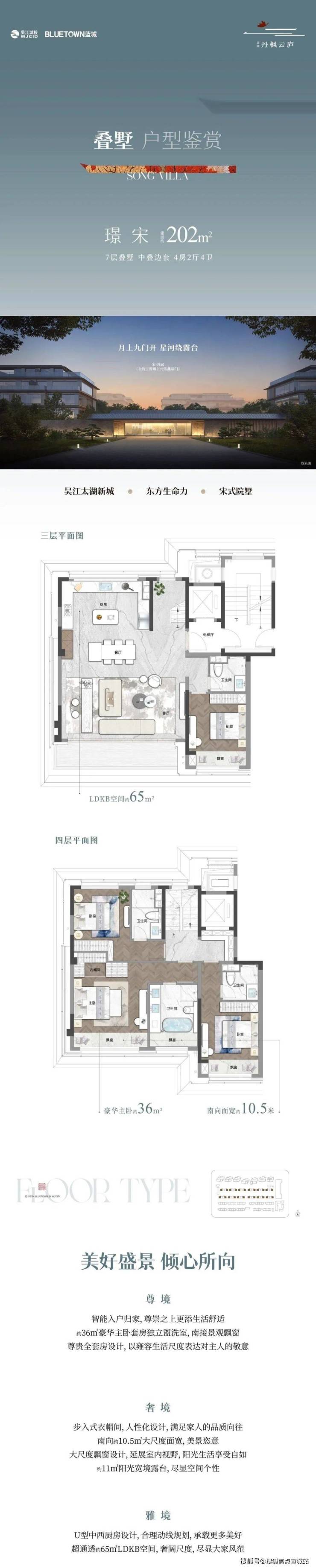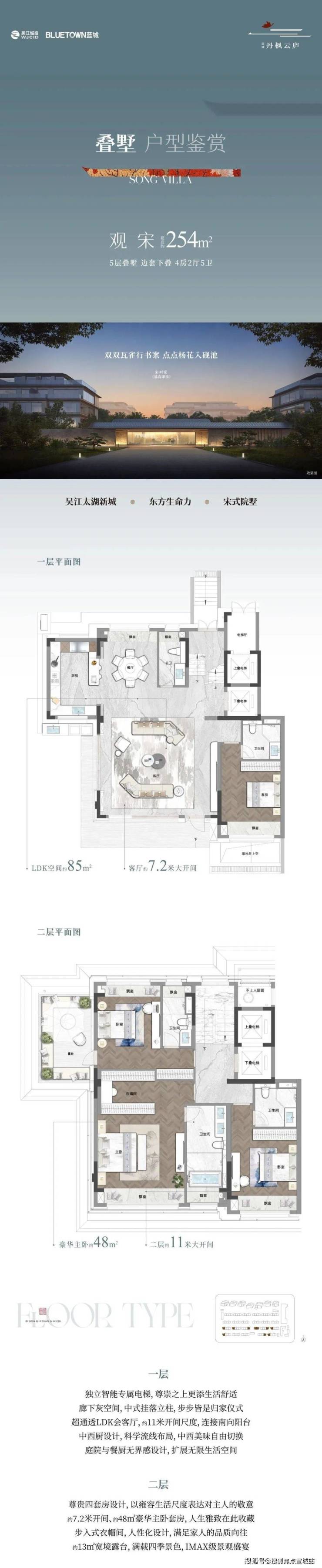 面积配比:约200-300㎡创新宋风院墅;约169-258㎡奢阔平层大宅