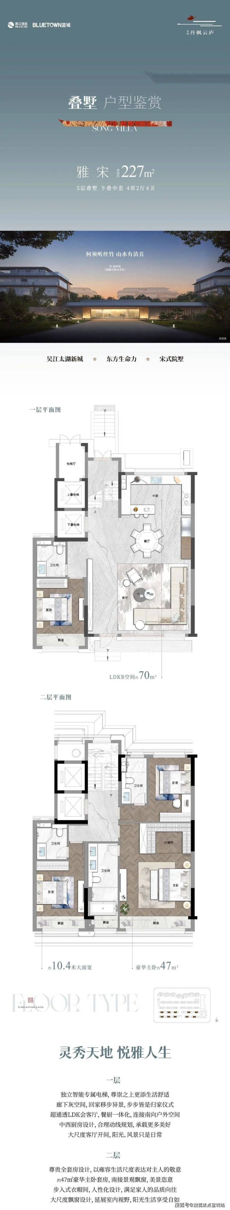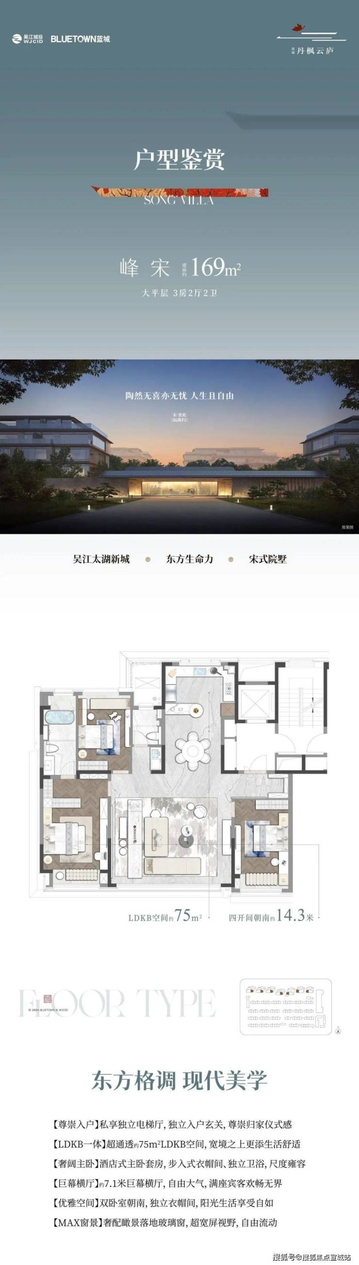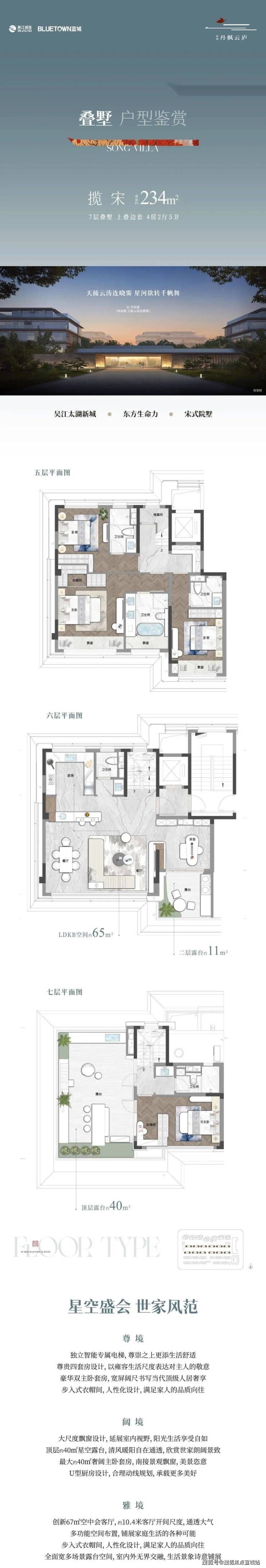 面积配比:约200-300㎡创新宋风院墅;约169-258㎡奢阔平层大宅