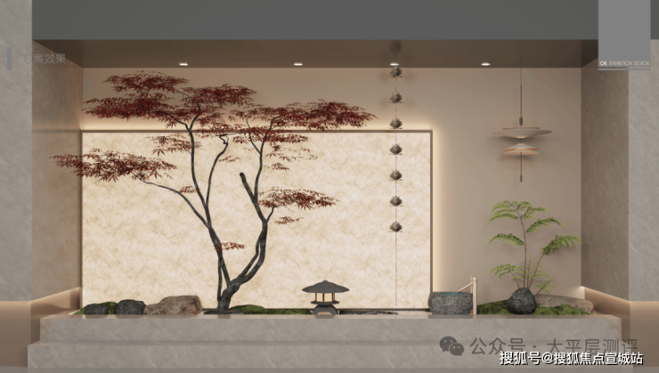 以原生奢石光影留白,巧妙运用黑白砾石作为地面铺装,精心挑选红枫、迎客松以及竹子等仿真树植巧妙植入其中,如同一幅生动的水墨画,为归家之旅增添了几分山水层次与意韵深度。