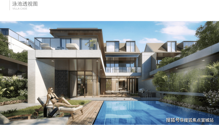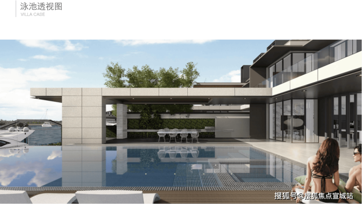 泳池里两旁的庭院,可以与亲朋好友相聚。
