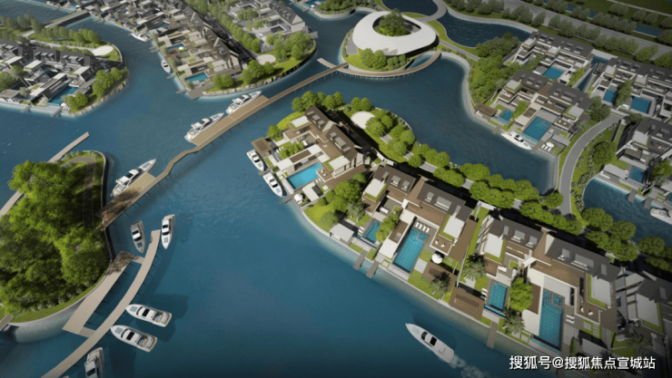 水系分布确保每家都能开游艇到兰香湖中心...太奢侈了!!
