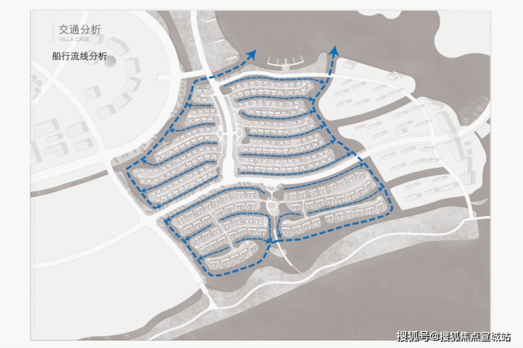 这个项目与迪拜棕榈岛确实也有相似之处,两条内部规划道路为主轴和车行道路,联排别墅如棕榈叶一般舒展开来。