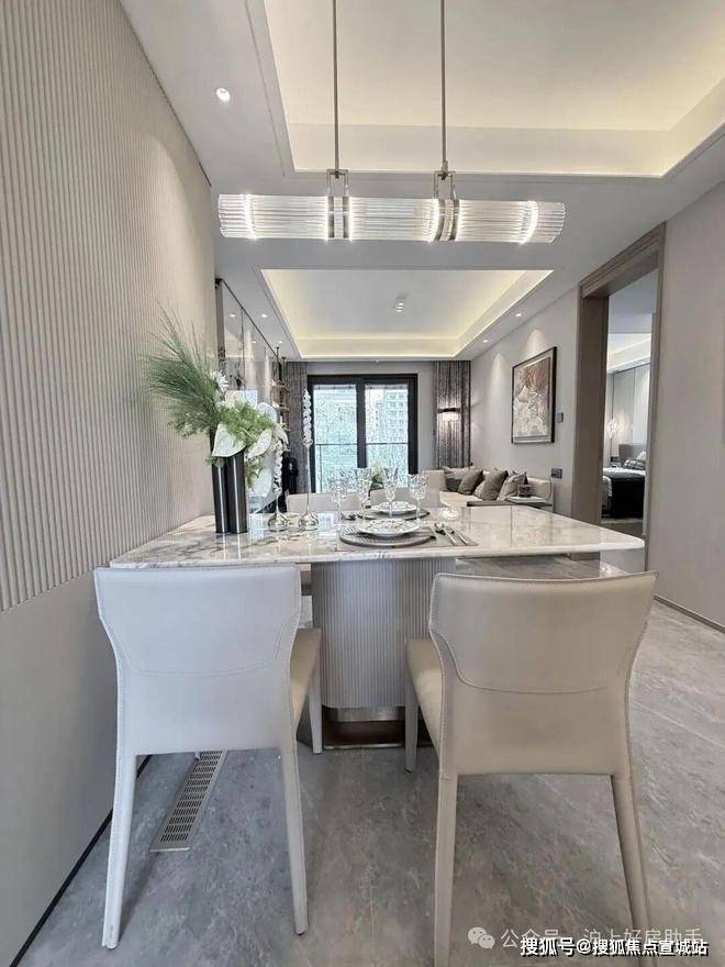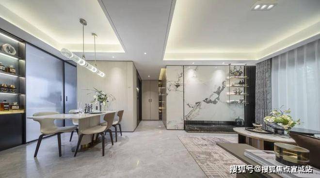 ✅✅张江金茂府售楼处电话:400-8862-334✅✅金茂定制壁布/墙纸:结合芬迪白岩板打造的客厅背景墙,营造独特的归家氛围。