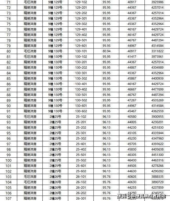一房一价表: