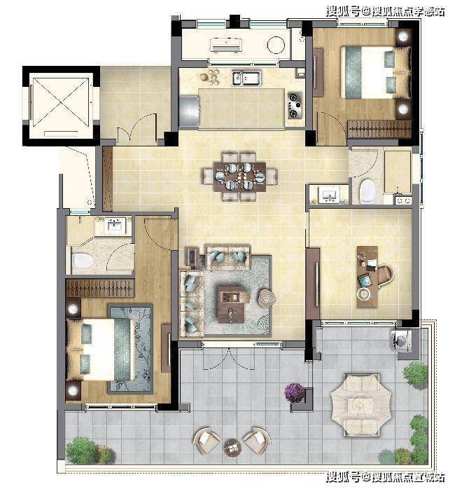 南向露台面积达30多个平方,不计入房型面积内。