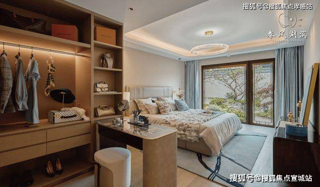 三开间朝南大面积的落地窗,坐在阔绰的卧室内,也能闲看庭院外云卷云舒,花开花落!