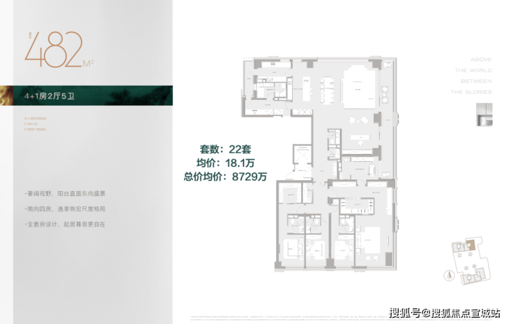 482㎡,3号楼东边套,均价18.1万,基本属于5房5卫,从这里开始,4个卧室全部套房设计,自带卫生间。
