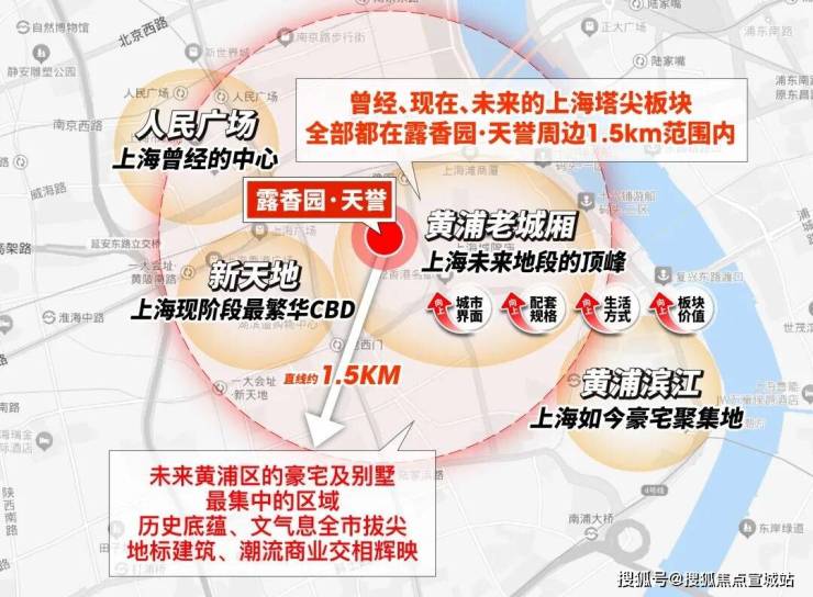 作为上海绝对市心,露香园直线距离人民广场、淮海路、新天地、外滩、豫园等上海市地标性区域均不超过1.5公里,距离陆家嘴直线约2公里。