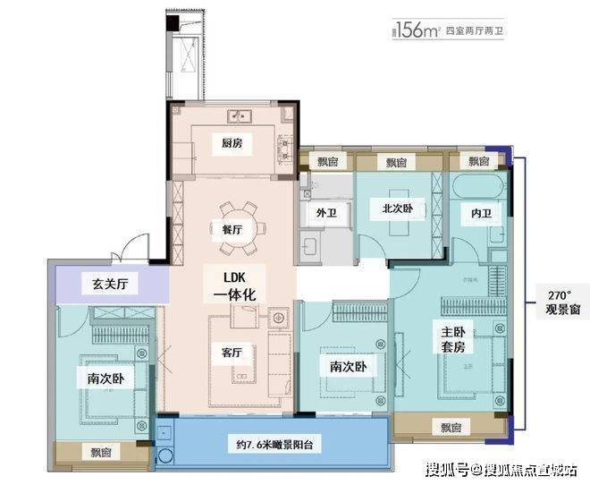 超尺度瞰景阳台,5大飘窗赠送,满足人们对大面宽、大景宽、大尺度生活的追求。主卧套房设计,自带品牌独立卫浴,预留L型步入式衣帽间,双270°多视野景观飘窗,奢适度拉满。