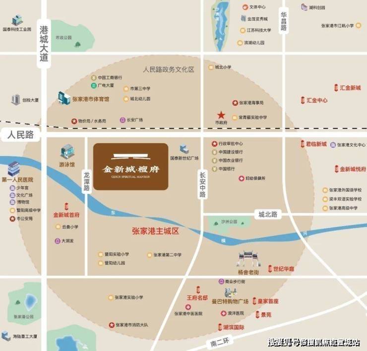 交通配套:临近人民西路、长安中路、港城大道等城市主干道,出行便捷;同时临近在建的轨交 10 号线杨舍站,未来可无缝接驳大苏州。