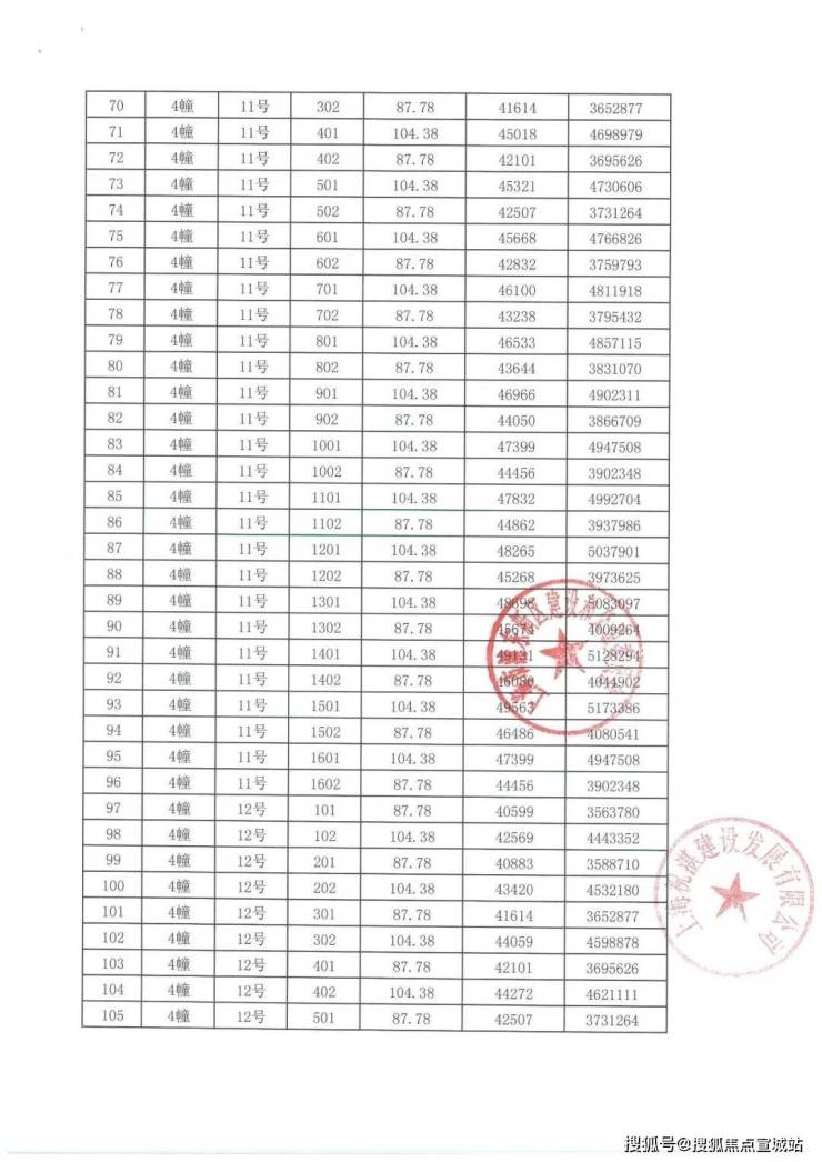 项目一房一价表