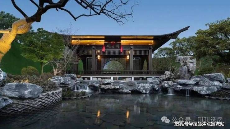 项目整体是中式风格,采用东方禅意造园手法,打造了“一环一轴四进十境”江南中式园林