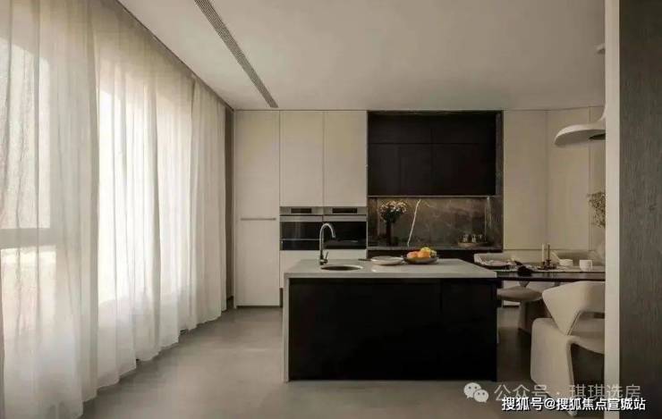 中西分厨的设计巧妙地传达了此处的功能性,并且还保持了整体的美观.