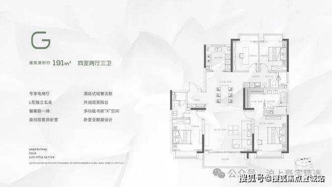 4 室 2 厅 3 卫:有建筑面积约 187㎡和 198㎡两种选择,四房的设计可以满足更多功能需求,比如可以设置成三间卧室加一间书房,或者是儿童房、客房等,适合人口较多的家庭居住,也能满足业主对于不同生活场景的空间需求。