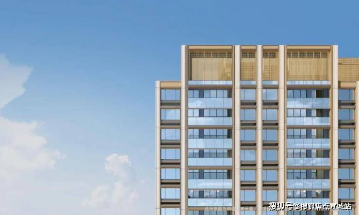 金色飘檐擦亮辨识度,南立面以大面玻璃主打,白、金、蓝灰为主调,配合部分涂料;基部用上了贝金米黄大理石,温润如月光。