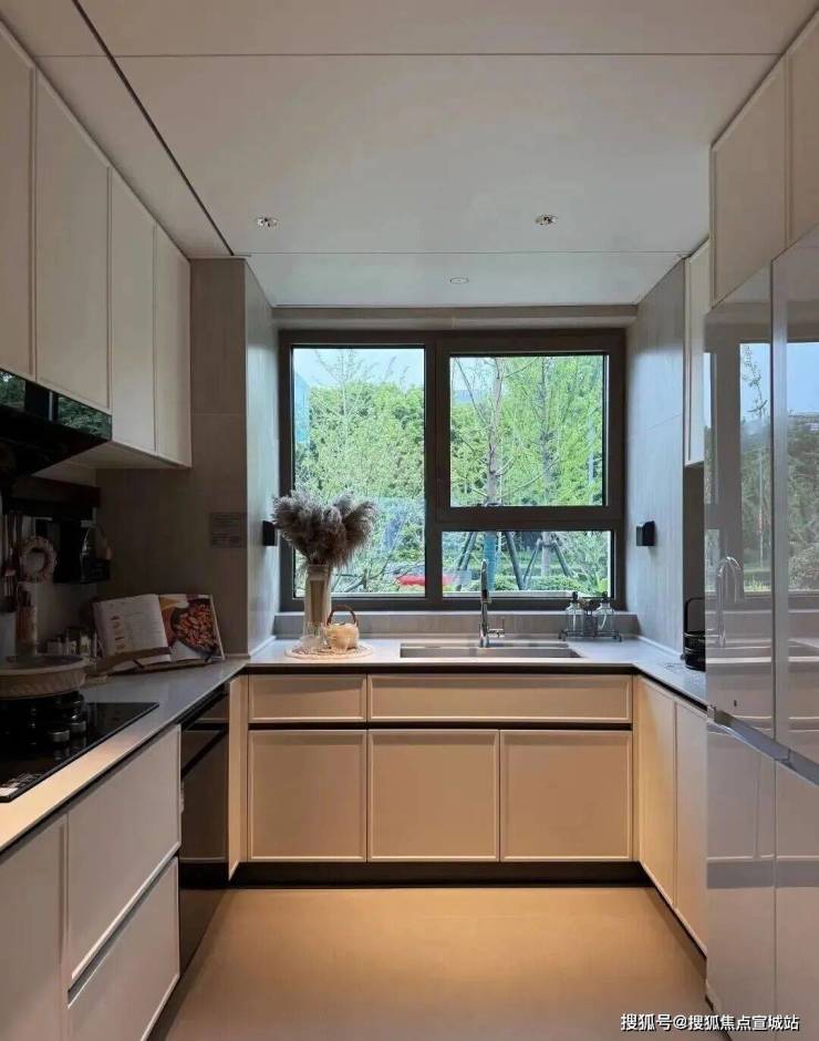 入户设置800库空间,它和传统玄关柜的区别在于:从“平面收纳”升级为“立体仓库”,储物功能更强大!约5米面宽横厅,多出来一个灵动空间,可根据个人需求定制为开放式书房、茶室等;岩板+金属饰面电视背景墙同样为交付标准;LDK一体化,餐厅区域可轻松放下6人位餐桌,并预留餐边柜位置;U型厨房,配置方太四件套(油烟机、灶具、洗碗机、蒸烤一体机)、科勒水槽及龙头等,基本所见即所得;同时厨房也附赠飘窗,将飘窗台面与橱柜一体化设计,做为了水槽区域,极大的提高了厨房空间的实用面积!边套户型主卧为270°转角飘窗,并预留两个衣柜空间;北卧为封闭阳台,实际交付时阳台会改造到位,地暖通铺,地板墙纸通铺,吊顶做好,可参考样间效果。