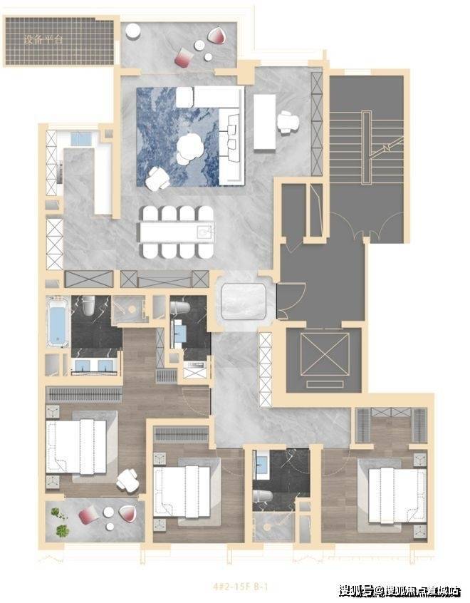 5开间朝南,4卧朝南,双卧套房设计,南向超大采光面,让阳光和清风肆意流淌;
