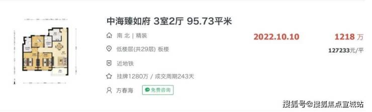 中海臻如府,同样是超高层住宅,房龄较新不超过3年,最新二手成交单价约12.7W/㎡。