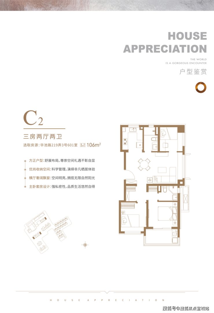 高层产品,包括建面约103-106平3房2厅2卫户型,几个主力户型做的非常不错,迎合了不同需求的购房群体。