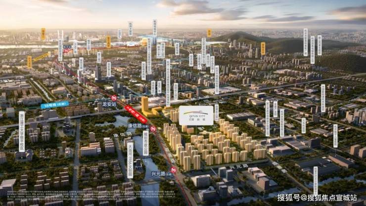 总建面约63万㎡,横跨地铁9号线兴元路站(在建)和康信路站(在建)两大地铁站,是杭州迄今为止,少数在自家小区里拥有两座地铁站的小区。