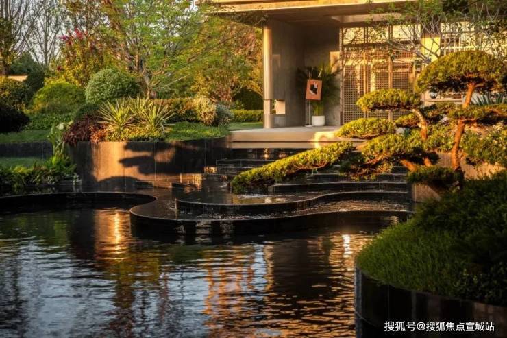 滨纷城又把小区主入口做得如酒店一般奢华,张扬的门头、石材景墙、水景庭院等元素都装进了入口的一方天地。
