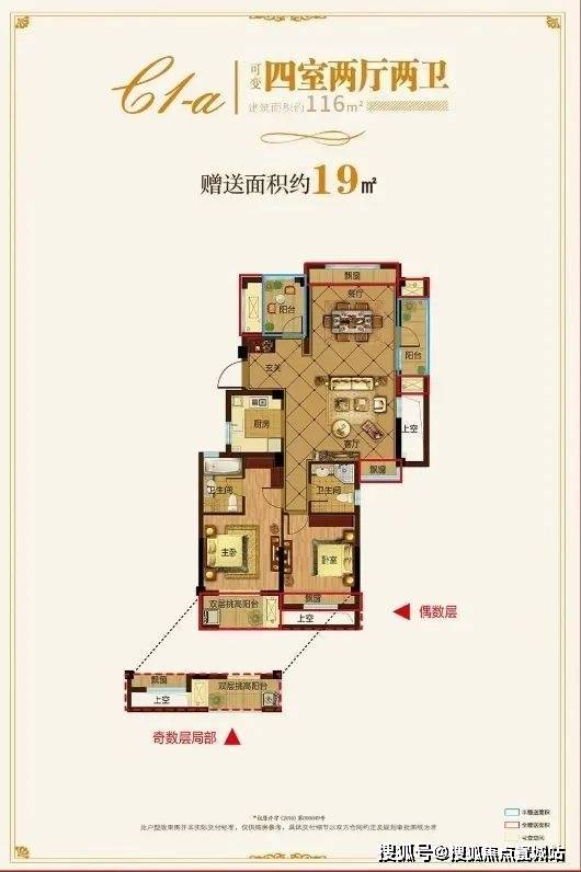 户型面积:主力户型为 73-133㎡二至四居,如 73㎡为两居室,133㎡为四居室,部分户型有双层挑高阳台和约 20㎡可变空间。