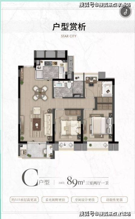 建面约89㎡三房