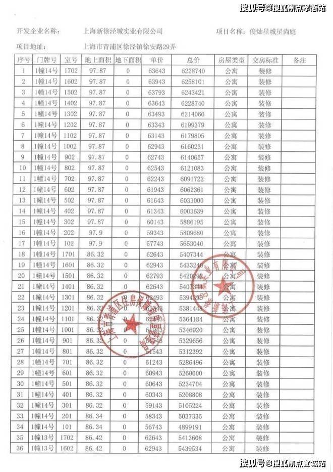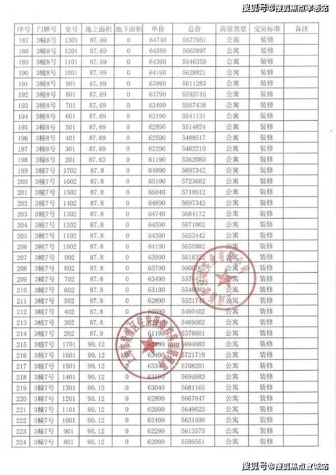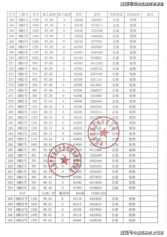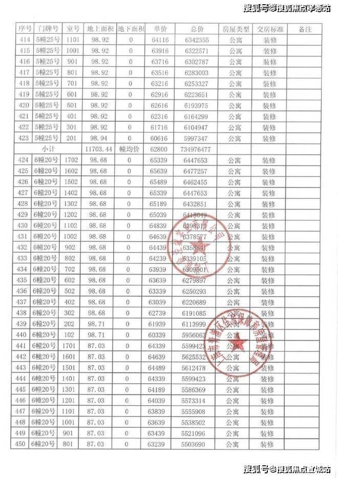以下为项目完整一房一价表