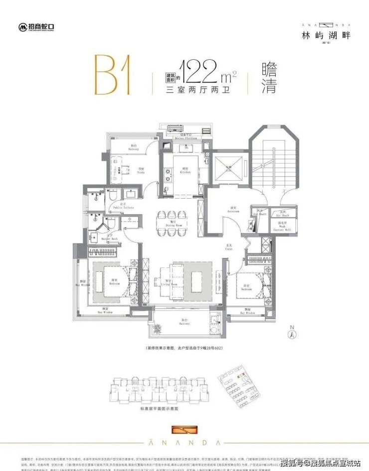 该户型分布在6号楼、9号楼、11号楼以及13号楼,其中9号楼位置最佳,南向楼间距约46米,下沉式庭院景观一览无余,下楼即达会所空间!