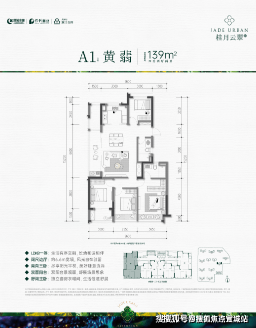 ❖ A1户型黄翡-建面约139㎡-4房2厅2卫