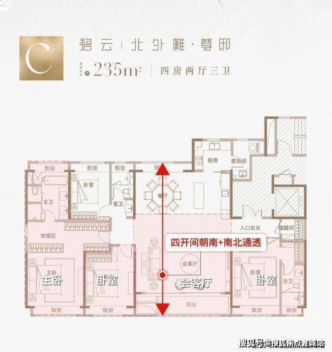建面约235㎡户型更是做到南北通透+四开间朝南+南向大宽厅的格局,让业主起居之间沐浴充足阳光。