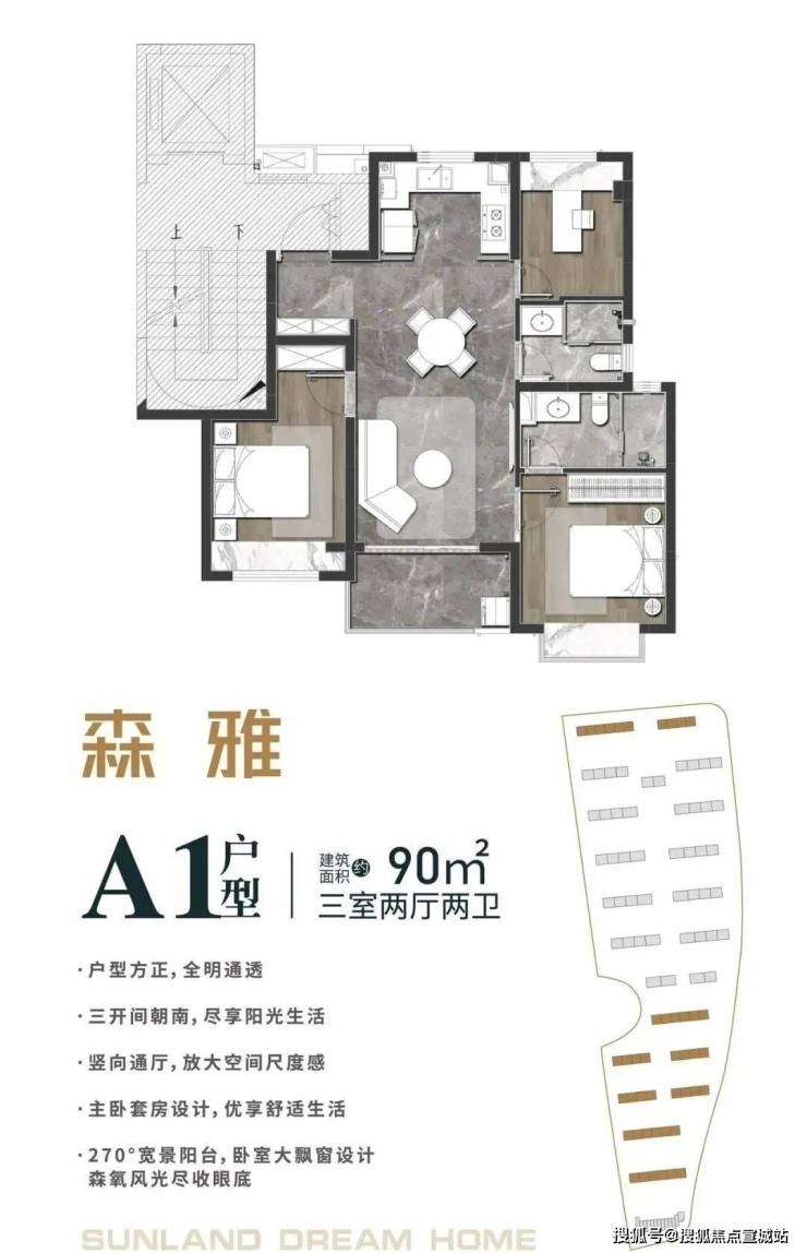 森兰·航荟名庭售楼处电话:400-8618-004建筑面积约90㎡三室两厅两卫