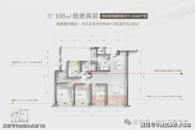 建面约108㎡四房两厅两卫