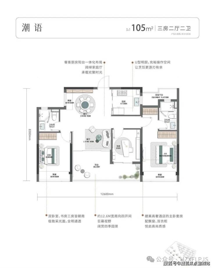 揽景小高层建筑面积约105-130㎡,为最大化景观面,突破性设计建筑面积约105㎡南向四开间。