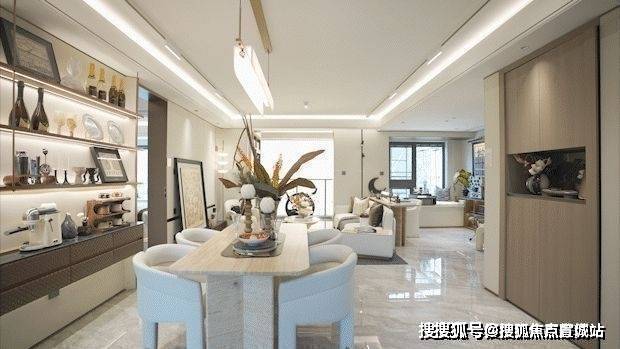 全墙纸交标结合整幅岩板客厅景墙,以定制设计感提升空间立体感。保利西郊和煦售楼处电话: 400-885-1337