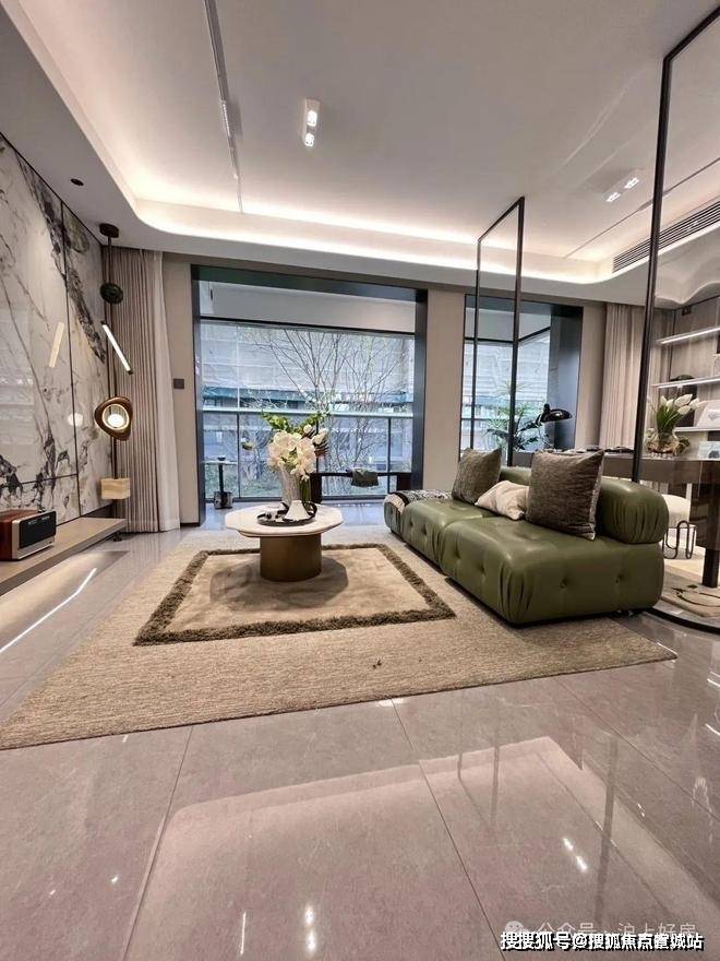 装修标准:配置大金中央空调、博世地暖、霍尼韦尔新风三大件,厨房五件套采用西门子或同档次品牌,卫浴选用汉斯格雅 + 杜拉维特组合,玄关、客餐厅地面为 750×1500㎜大板砖,卧室为多层实木复合地板,所有材料均通过中国绿色建材产品三星认证。